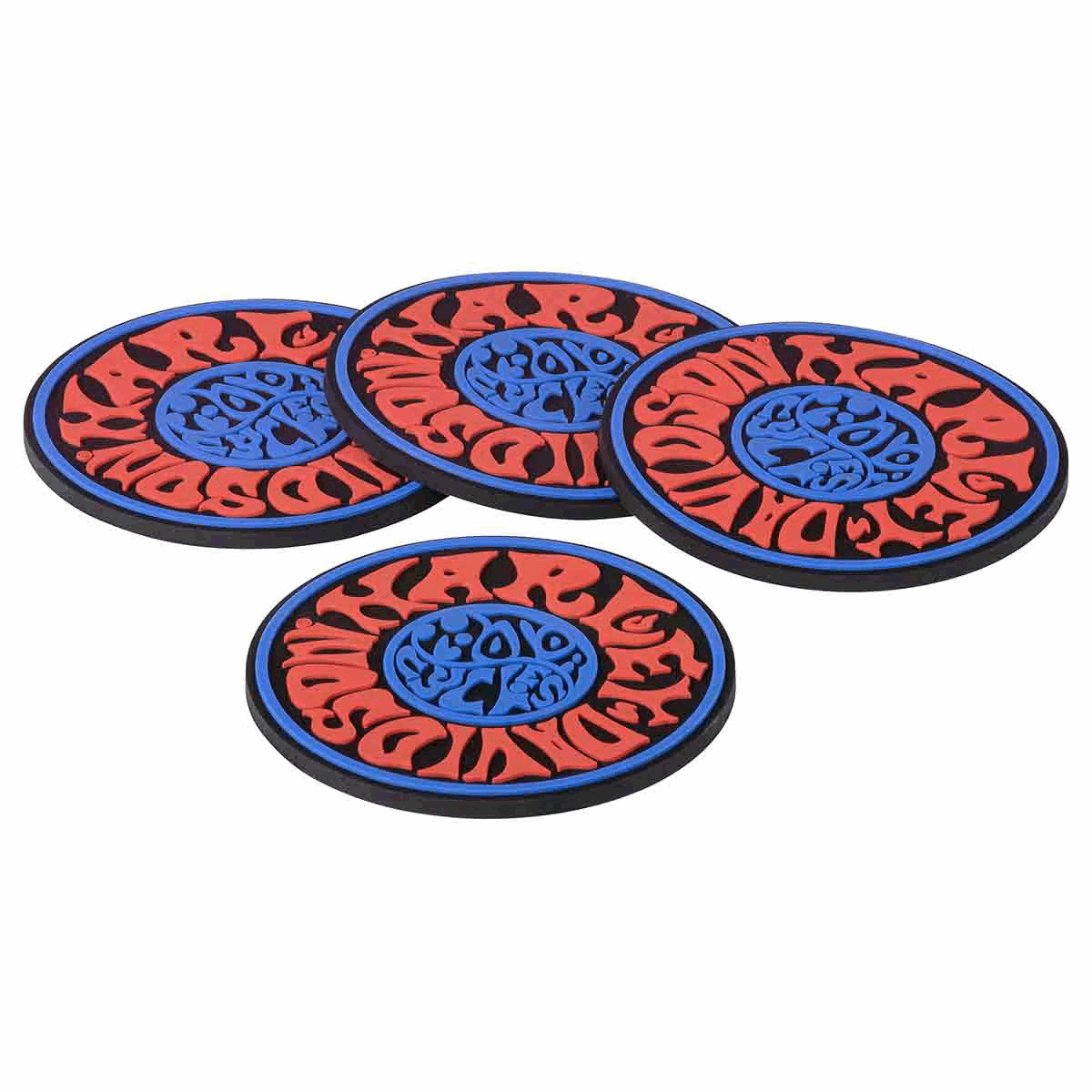 Disse coasters er laget i sklisikkert, konturert gummimateriale som ligger stødig på bordet og effektivt beskytter mot dråper, fukt og ringer fra glass. Settet inneholder fire coasters, hver med et distinkt 1970-talls psykedelisk grafisk uttrykk.