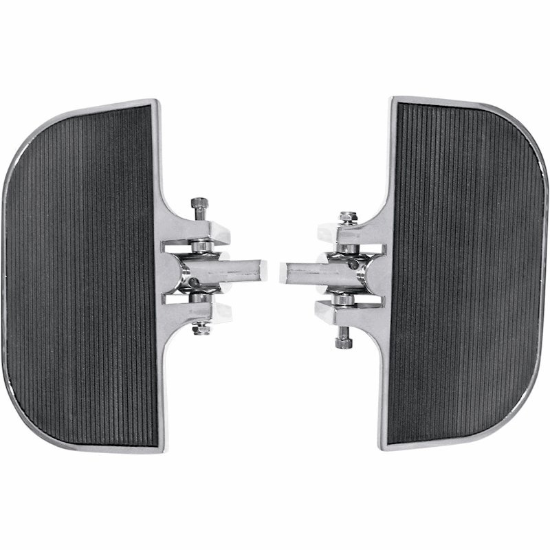 Disse kompakte gulvbrettene fra Emgo kombinerer støpt konstruksjon med kromfinish og sklisikker gummioverflate for komfort og kontroll. De erstatter fothvilere med hannfeste og har ekstra monteringshull som gjør det mulig å rotere gulvbrettene opptil 15 grader, slik at du kan finne den perfekte kjørestillingen.