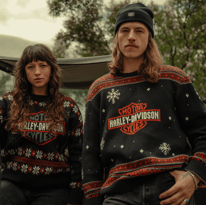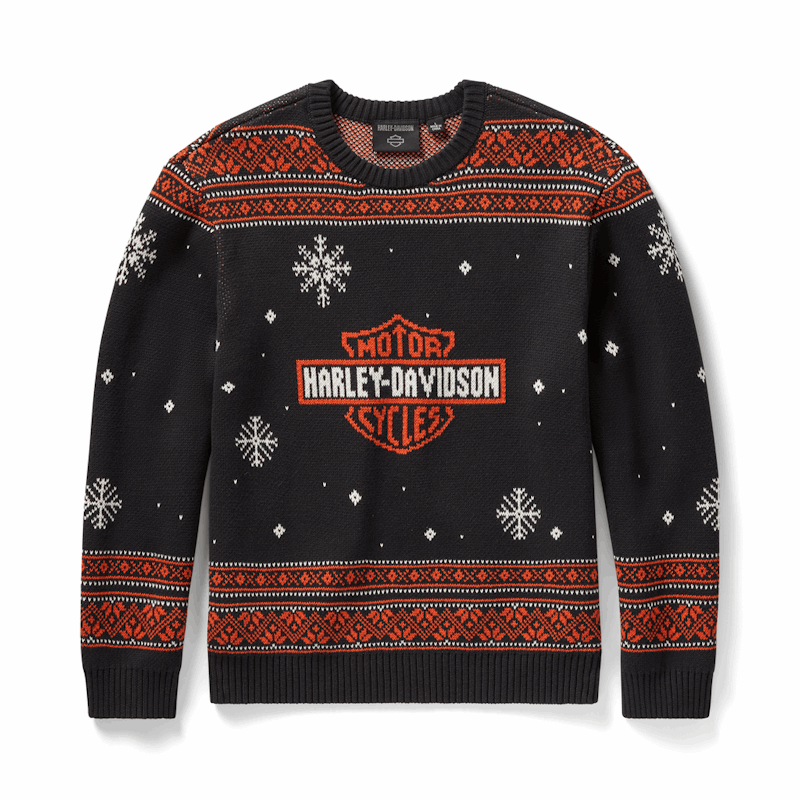 Feir jul med stil! Denne svarte Harley-Davidson julegenseren kombinerer klassisk vinterdesign med ikonisk motorsykkelattitude. Genseren har røde og hvite detaljer, med snøfnugg og geometriske mønstre som gir et festlig uttrykk. Midt på brystet finner du den klassiske Harley-Davidson-logoen i rødt og hvitt – et tydelig statement for ekte entusiaster.