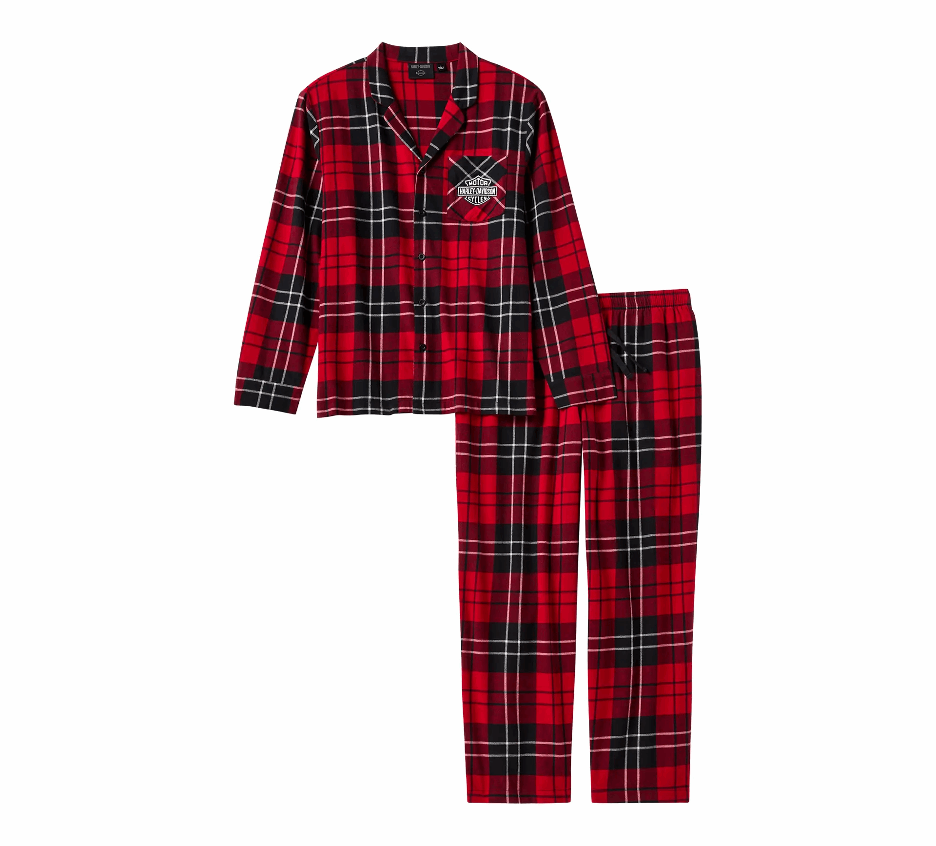 Harley-Davidson® Herre Pysjsett – Bar & Shield Rutemønster Svart/Rød