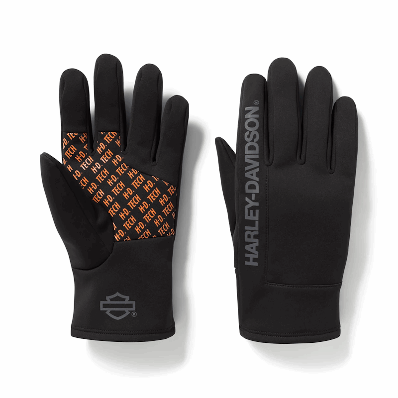 Hold varmen i moderne motorsykkelstil med våre H-D® TECH Fleece-hansker. Disse hanskene for menn er laget av myk polyesterfleece med en vindbestandig finish som gir ekstra komfort i kaldt vær. De har et unikt design med spesiallagde grafiske detaljer over hele håndflaten som tilfører farge, samt en ton-i-ton detalj med vår moderne branding.