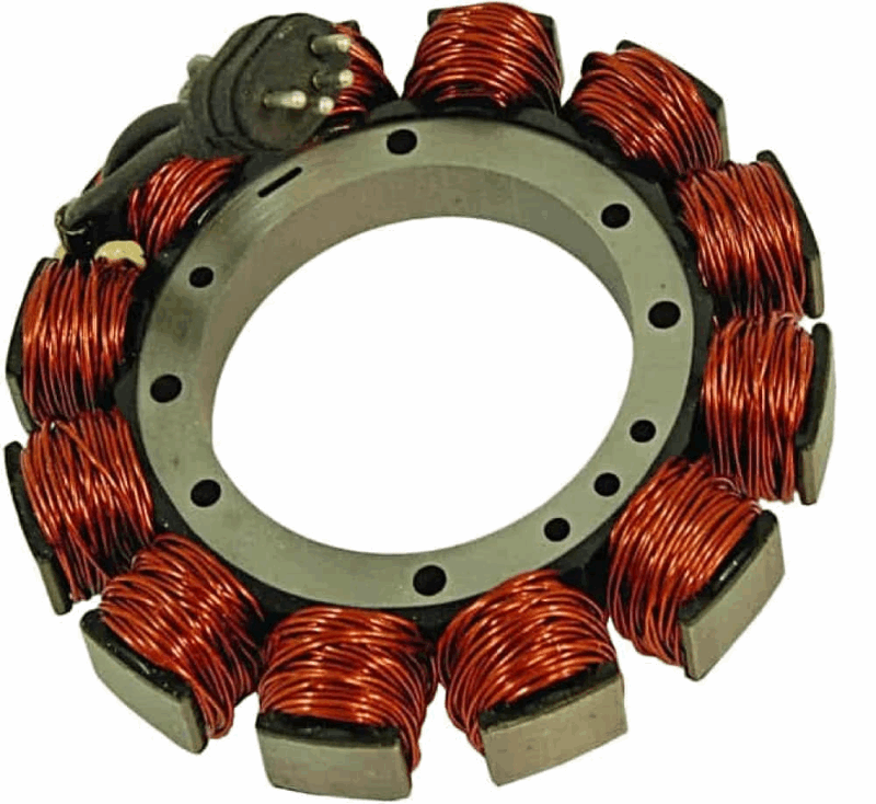Denne statoren fra Harley-Davidson er designet for Harley-Davidson Big Twin-modeller fra 1970–1975, og er en del av et 15 ampères ladesystem.