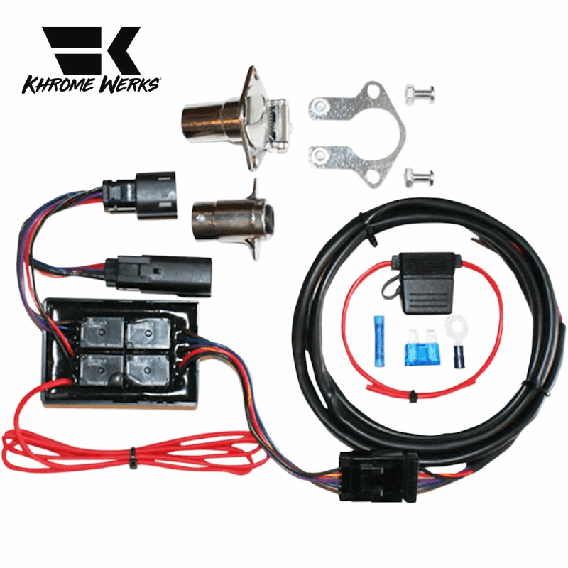 Gjør tilhengerkoblingen enkel og sikker med dette plug-and-play ledningssettet fra Khrome Werks, distribuert av Drag Specialties. Perfekt for Harley-Davidson Touring-modeller!