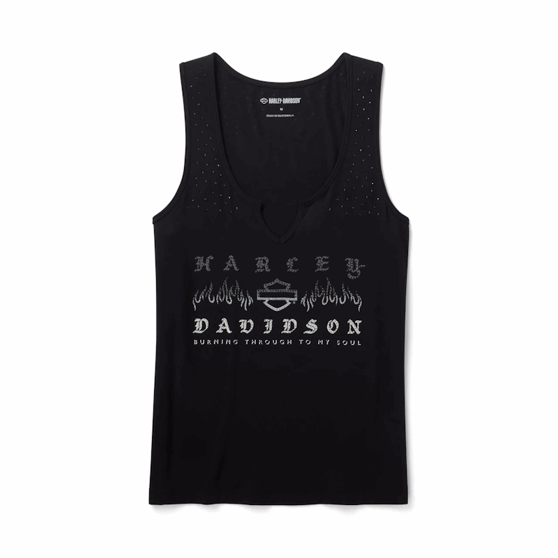 Vis din lidenskap for moto-livsstilen med Bling H-D® Slow Burn Notch Neck Tank!
