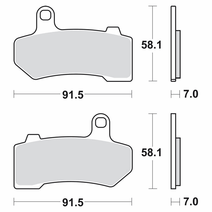 - Godkjenninger og passform: R90-godkjent, OEM-bak-kompound med passform som varer — tykkelse 7 mm, bredde 91,5 mm, høyde 58,1 mm