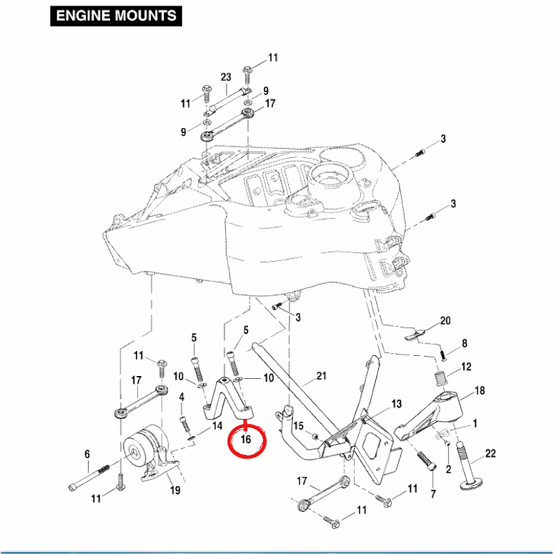 Original Buell øvre motorfeste / tie bar mount. Dette er en OEM-del som brukes til å stabilisere motoren i rammen og redusere vibrasjoner. Delen er produsert i solid metall og er designet for å passe perfekt til flere Buell XB-modeller. Den er ideell som erstatning ved slitasje eller skade, og sikrer at motorsykkelen opprettholder optimal kjøreegenskaper og struktur.