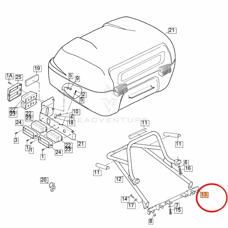 Buell Ulysses toppkoffert-festebrakett, nedre