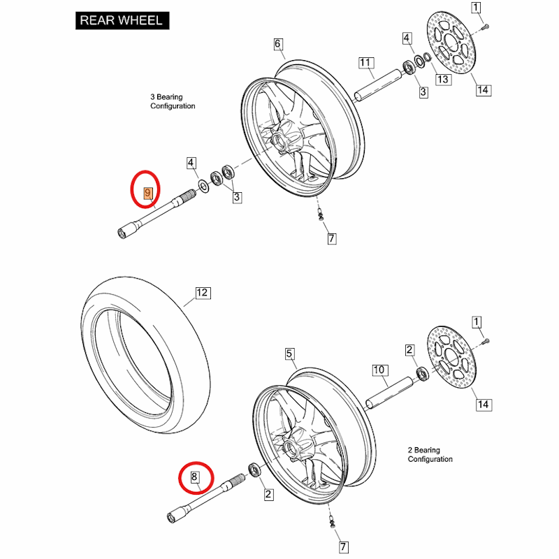 - 2003–2010 XB-modeller med bakhjul med 2 eller 3 lagre