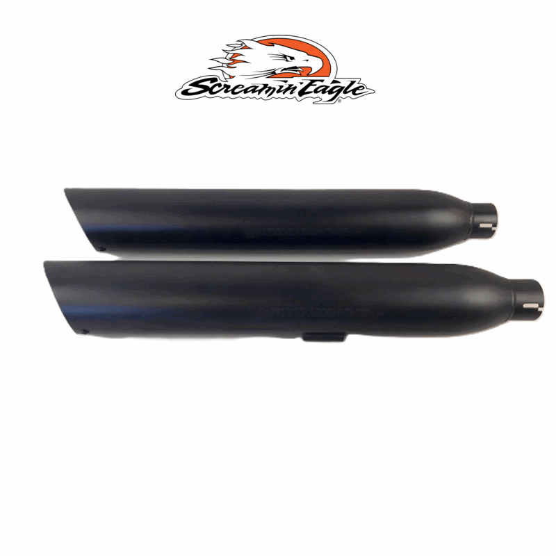 Disse fabrikkjusterte lyddemperne fra Screamin’ Eagle® gir motorsykkelen en rik og aggressiv eksoslyd som virkelig merkes. Den varmebestandige jet-svarte Cermat-belegningen tåler tøff bruk og vil verken falme eller bli blå. Dette settet er perfekt for deg som ønsker et blacked-out custom-utseende.