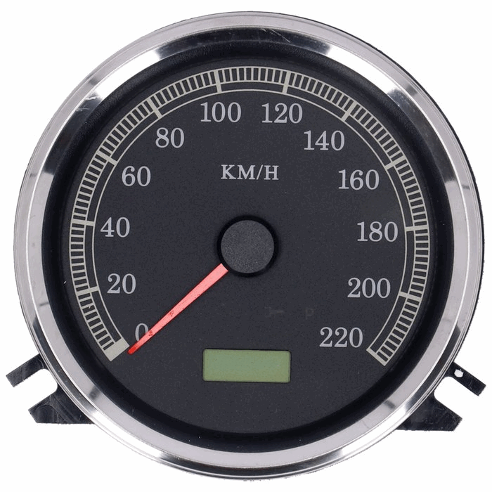 Oppgrader din Harley-Davidson med et klassisk speedometer i original stil, kombinert med moderne funksjonalitet. Dette speedometeret gir deg presis hastighetsmåling fra 0–220 km/t og har et integrert LCD-display for ekstra informasjon – alt i et design som matcher sykkelens autentiske uttrykk.