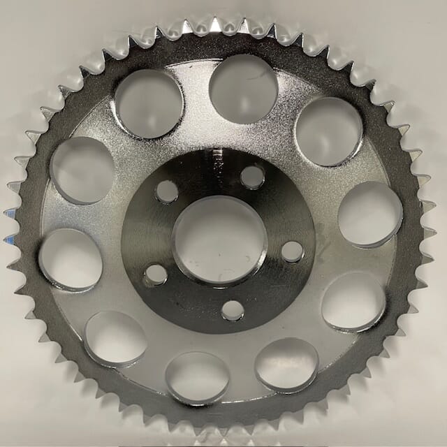 Dette drevet gir en solid og pålitelig kraftoverføring samtidig som det tilfører et klassisk kromutseende til bakhjulet. Den innebygde offseten gjør det også til et godt valg for tilpassede 4-trinns prosjekter hvor ekstra dekklaring er nødvendig.