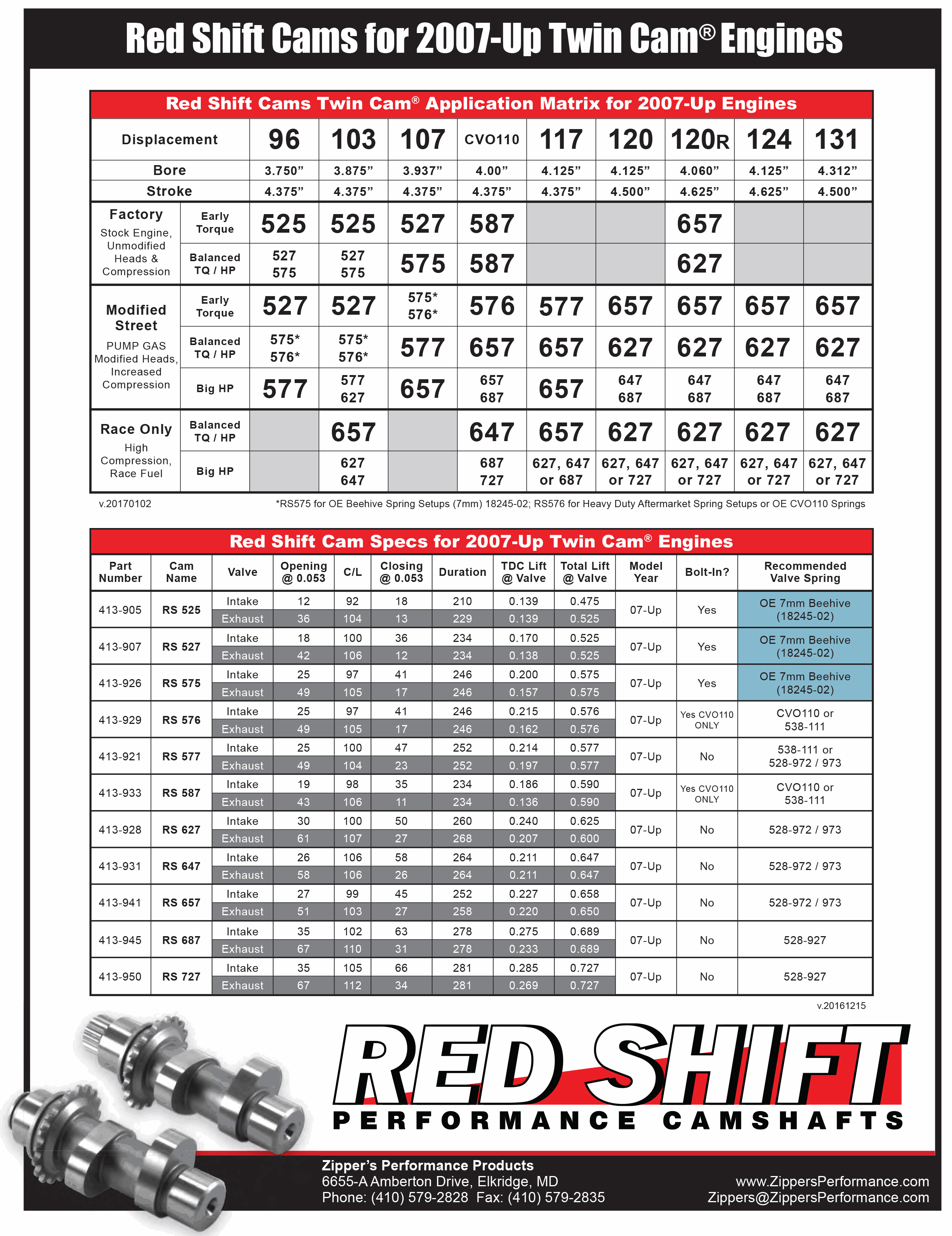 Disse 627-HS kamakslene fra Red Shift-serien er utviklet for Harley-Davidson Twin Cam-motorer fra 2007 og oppover, og gir betydelig forbedret ytelse for motorer med høy kompresjon og modifiserte komponenter.
