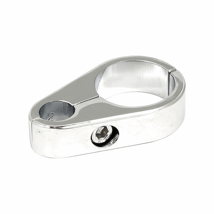 Denne solide og stilrene kabelklammeren i krom er designet for å feste clutchkabelen sikkert til rammen på motorsykkelen. Med en indre diameter på 1" (25,4 mm) passer den perfekt til standard rammerør, og det ene monteringshullet på 10 mm gir enkel og stabil installasjon.