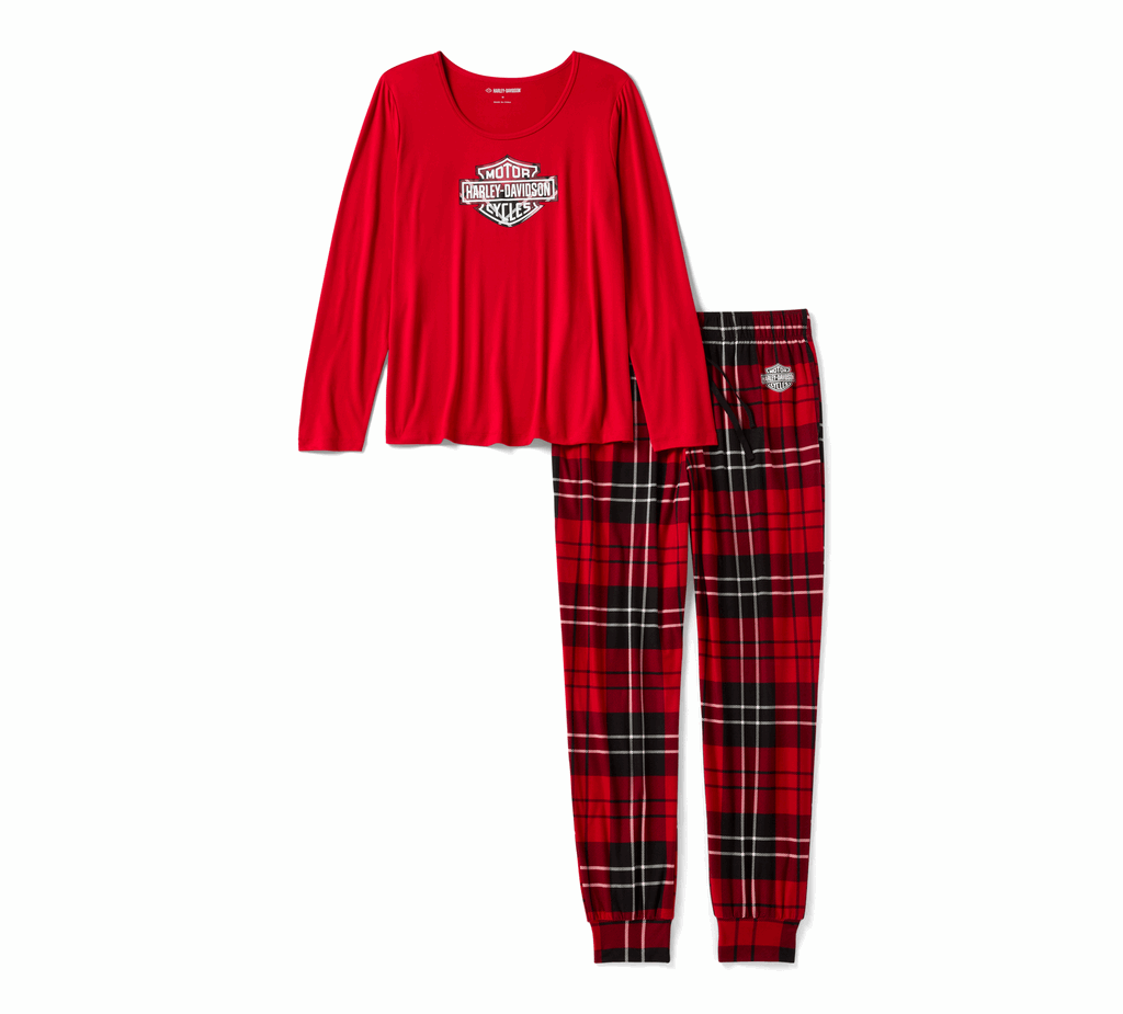 HARLEY-DAVIDSON WOMENS BAR & SHIELD PLAID PAJAMA SET