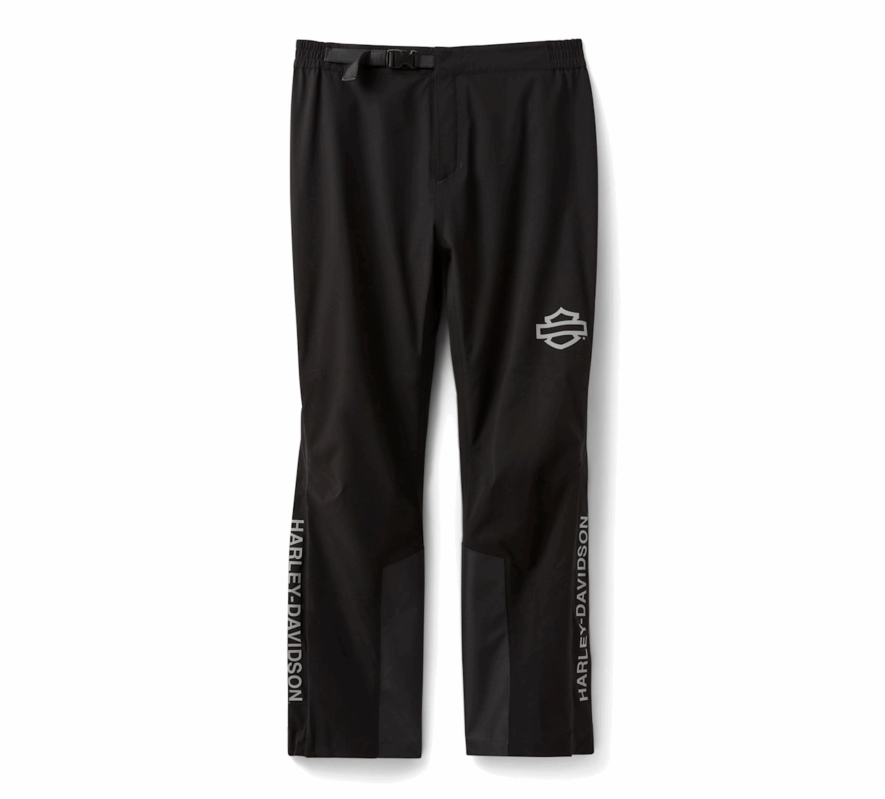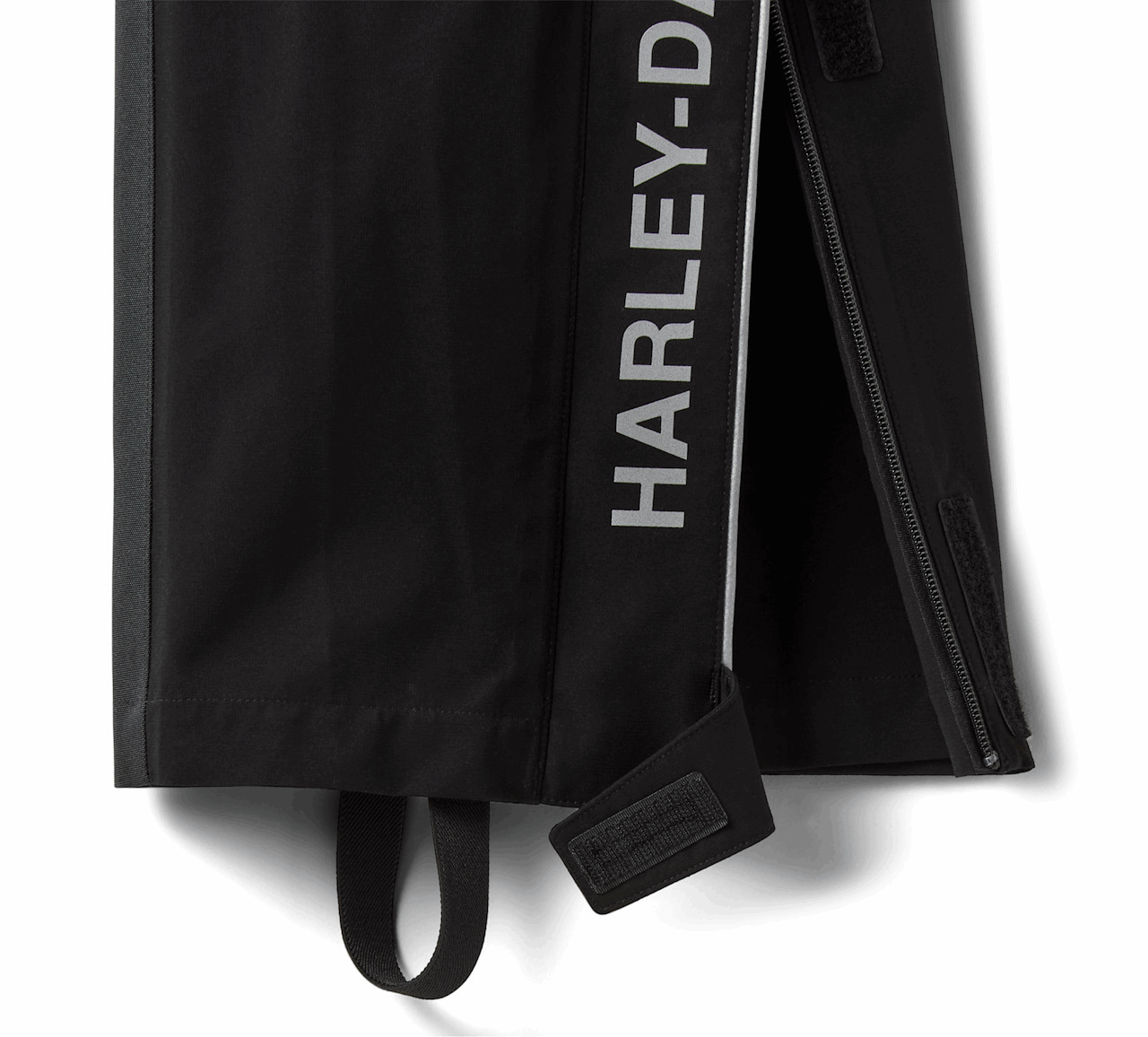 Dårlig vær vil ikke hindre deg i å samle mil med våre H-D® Full Force Waterproof Rain Pant. Den trelags laminerte konstruksjonen er laget for å brukes utenpå ditt beskyttende kjøreutstyr og sørger for at vind og regn ikke ødelegger turen. Disse regnbuksene for menn er fullt tapet i sømmene og har justerbar linning, glidelås­åpning ved leggen med avtakbare stigbøyler, samt refleksmateriale for økt synlighet. Bruk dem sammen med vår H-D Full Force Waterproof Rain Jacket, som leveres med en vanntett pakkpose slik at du enkelt kan holde alt regnutstyret samlet.